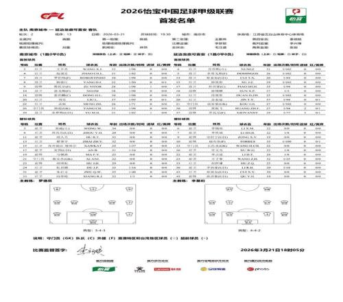 首輪南京城市與長春亞泰的比賽也出現了類似情況,賽前版本的首發名單中是有長春亞泰外援賴納的,但更新后他的位置被陳國良替代,賴納甚至沒有進入替補名單,這與喬瓦尼從首發變為替補不同。