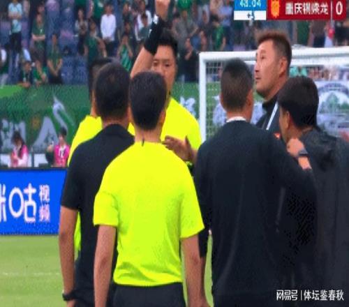 上半場第45分鐘,銅梁龍教練組成員因為抗議判罰吃到紅牌,這讓很多球迷都覺得這位老裁判態度很強硬。可比賽越往后踢,張曉晨的判罰就變得越來越猶豫。尤其是米特里策和李鎮全的沖突。