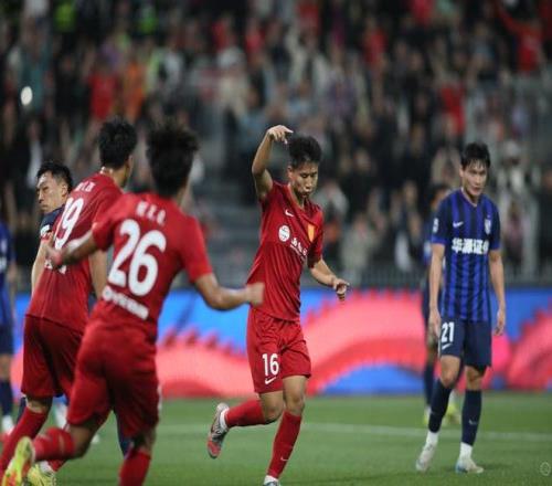 張志雄和隊友慶祝進球。上游新聞記者 錢波 攝