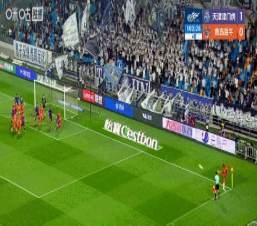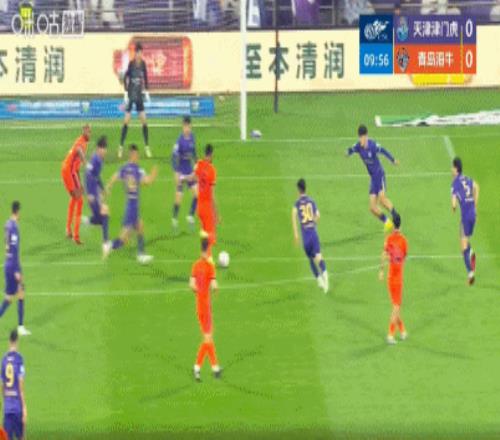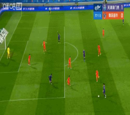 第77分鐘,海牛后衛解圍失誤,謝蒂內打門折射入網,津門虎1-0領先海牛