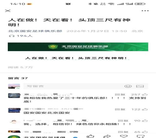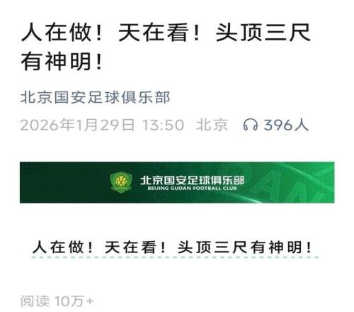 1月29日下午,北京國安官方社交平臺悄然更新一則短訊,措辭凝練如刀,被外界普遍解讀為直面中國足協的公開表態。