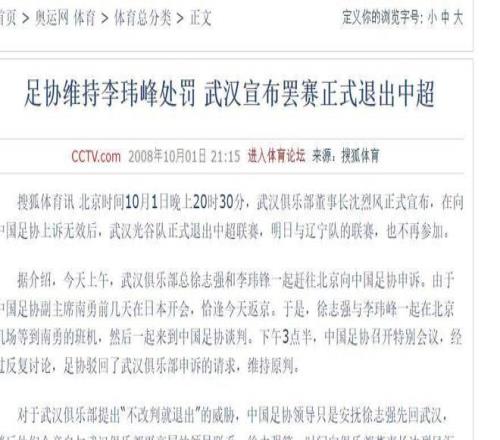 俱樂部隨即發出最后通牒:若不撤銷對李瑋鋒的追加處罰,將退出中超聯賽。