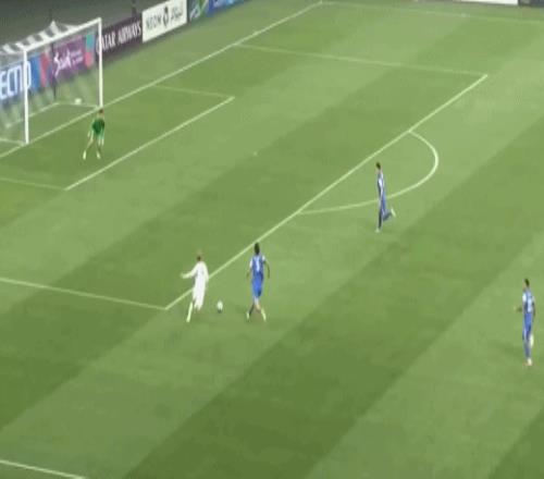 第33分鐘,吳曦中場斜傳,拉唐胸停球后小角度勁射擊中邊網。