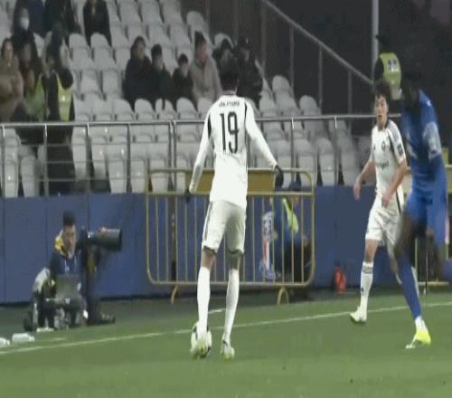 開場20秒,藤尾翔太突入禁區被金順凱撞倒,主裁判判罰點球并且向金順凱出示黃牌,相馬勇紀主罰點球破門,0比1!