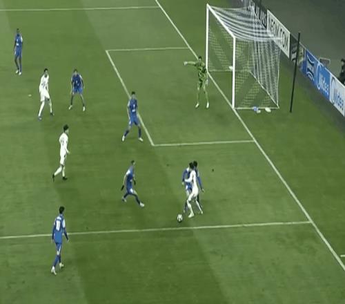 第33分鐘,吳曦中場送出一腳精準的長傳,左邊插上的拉唐停球勁射,擊中邊網。望月海輝邊路的個人盤帶,令陳晉一和拉唐的防守有些狼狽。半場比賽結束,申花暫時一球落后。
