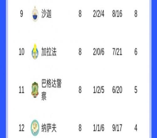 大家只從東亞區來比較,其實如果放到西亞區,海港這個成績也是西亞區倒數第一。看上圖,排名西亞區倒數第一的納薩夫也是4分,其凈勝球為-8。因此,海港在前8輪戰罷,其積分排名是全亞冠精英賽24支球隊中最低的。