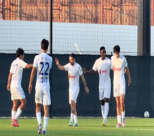 迪拜拉練期間,英博踢三場(chǎng)熱身賽都輸了,但是都是小負(fù),也一場(chǎng)比一場(chǎng)踢得好:0-1阿治曼(阿聯(lián)酋超)、0-1莫斯科斯巴達(dá)(俄超)、1-2陶里亞蒂阿克?。ǘ沓?。在上海備戰(zhàn)沖刺,“彭萊連線”爭(zhēng)取實(shí)戰(zhàn)閃光。圍繞這對(duì)組合設(shè)計(jì)快速反擊戰(zhàn)術(shù),斯坦丘輸送,阿奇姆彭突擊,馬萊萊終結(jié)。