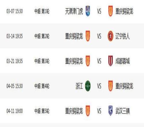 中超聯賽賽程出爐,前五輪重慶銅梁龍“三主兩客”,中超第1輪客戰天津津門虎,爭取1分;隨后迎來兩連主,第2輪主場迎戰遼寧鐵人,力爭3分;第3輪主場迎戰成都蓉城,拿分太難。第4輪客戰浙江,爭取帶走1分,第5輪主場迎戰武漢三鎮,爭取3分。當然,這只是“一廂情愿”,每場都是戰術博弈,實力比拼。