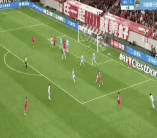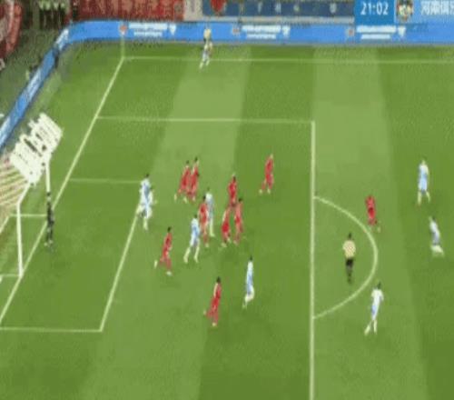 下半場,海港馬上換上蒯紀聞。而河南隊繼續猛攻猛打,進攻效率很高。第53分鐘,一次相對簡單的配合就撕破海港防線,幸虧顏駿凌迅速倒地化解險情。