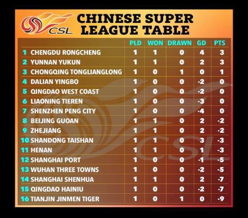 中超第1輪,負分的球隊北京國安、浙江隊、山東泰山、河南隊、上海申花收獲開門紅,全取3分,不過在積分榜上,他們依舊是負分。《太陽報》曬出積分榜,還給出點評:這是詭異的足球聯賽積分榜。